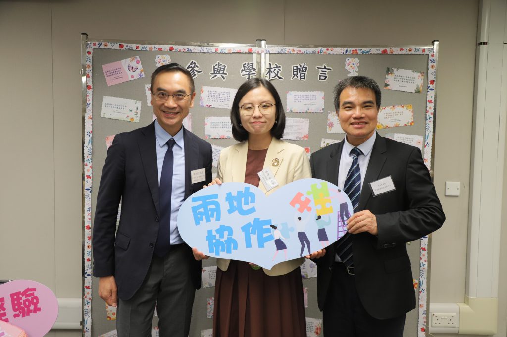香港教育局首席教育主任梁柏偉、教育部港澳台辦李琦副處長、香港教育研究發展中心總監詹華軍合影留念。