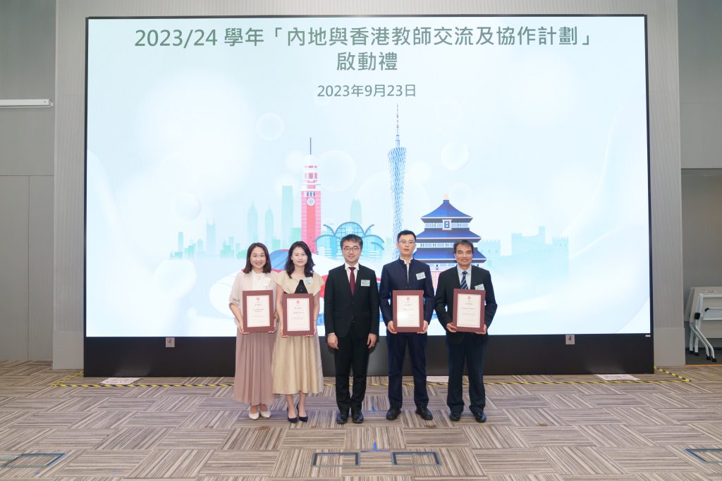 施俊輝署理局長代表香港教育局向中聯辦教育科技部、香港教育研究發展中心、華潤隆地有限公司的代表頒發感謝狀。