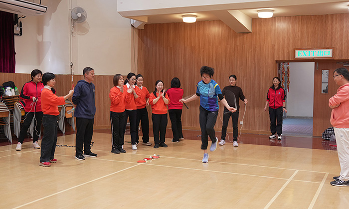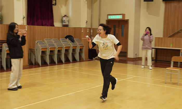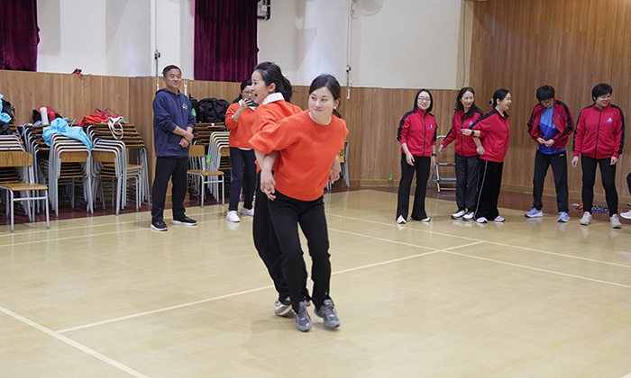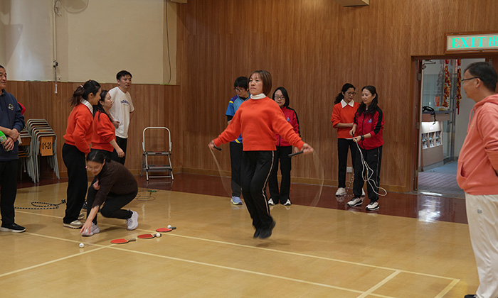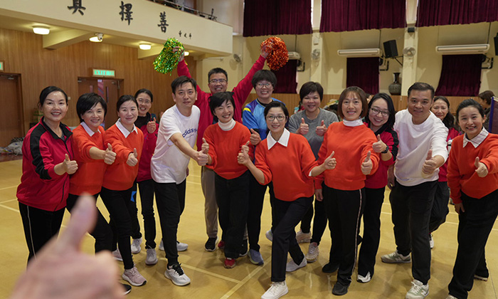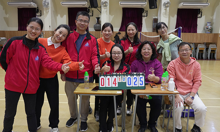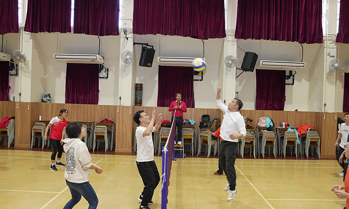 活動在幼教組老師的帶領下拉開帷幕,伴隨著富有節奏感的音樂,全體教師進行了充滿活力的熱身運動,瞬間點燃了現場的氣氛。隨後,內師分成「大圍、上水組」和「九龍塘、胡油沙組」兩大陣營,通過氣排球比賽、跳繩及運送乒乓球接力賽、背運排球接力賽等進行友誼賽。無論是場上落力拼搏,還是場邊熱烈打氣,內師以運動員、裁判、工作人員、啦啦隊等各種身份參與其中,全情投入。